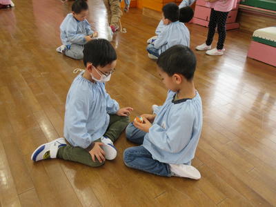 手回しこまを回すだけでなく、逆さ回しにも挑戦しました。みんなとても上手で驚きました。