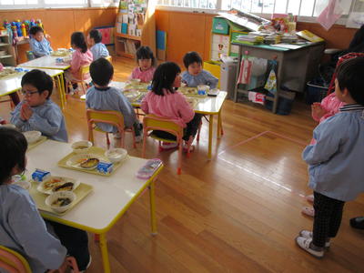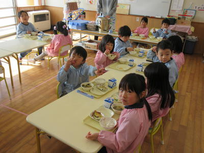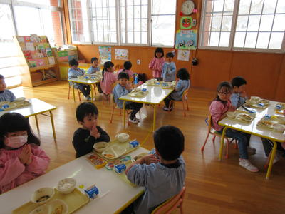 午前中、雪で思い切り遊んだので、食べている途中から眠気が出てきた子もいました。