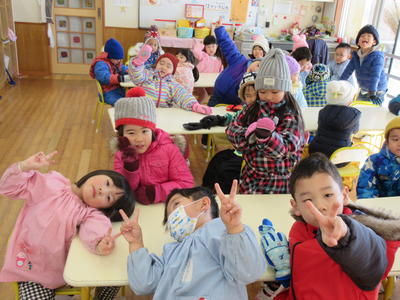 今日の雪は湿っているため、長靴が濡れてしまったお子さんもいますがご理解ください。