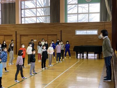 音楽主任から、心をこめて校歌や式歌の歌詞についてのお話がありました