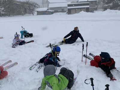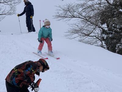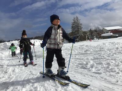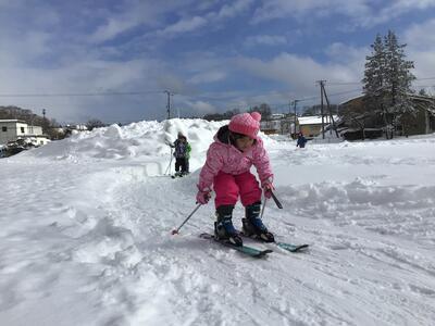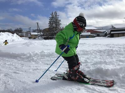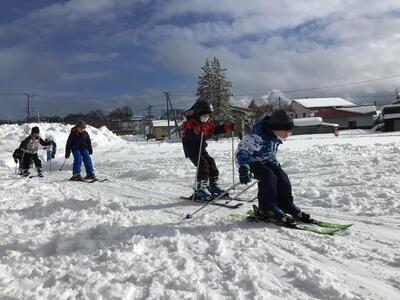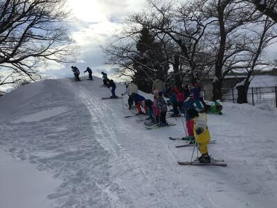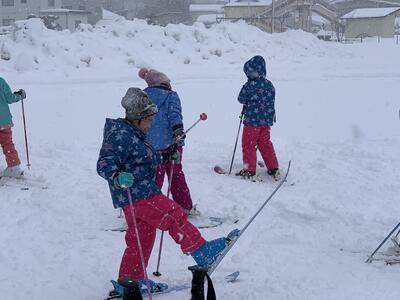 久しぶりにお日さまが顔を出し、気もちのよい天気の中、1年生がスキーの授業を行いました