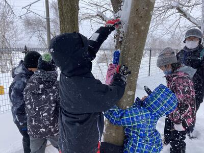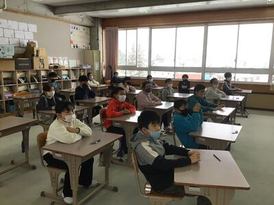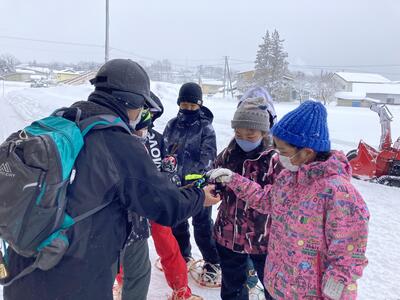 (当日は朝から時々吹雪でしたが、なぜか4年生が活動するときだけはおさまっていました本当に天気に恵まれている子どもたちです)