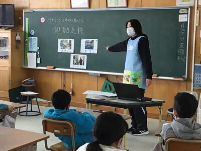5年生が総合的な学習の時間にて、磐梯明神太鼓に引き続き、昔語りに挑戦します