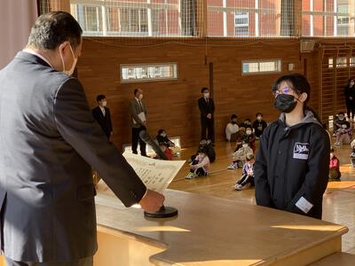 今日も、式の前に書道、絵画、ミニバスケットボールの表彰と多くの表彰を行いました
