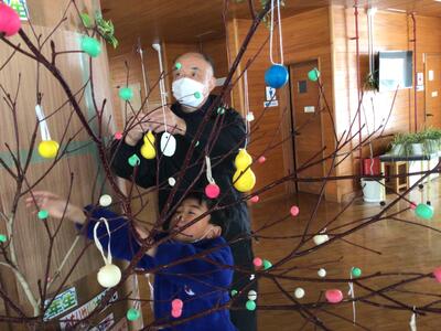 今日は恒例の1,2年生による団子さしと飾りつけが行われました
