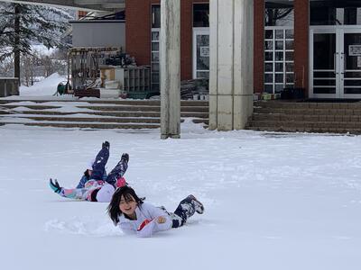 今日は比較的穏やかな天気で、昼休みに子どもたちが元気に雪遊びをしていました