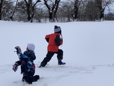 たび重なる寒波の影響で、雪かたしは大変でしたが、子どもたちは雪遊びやウィンタースポーツに親しみ、嬉しそうです