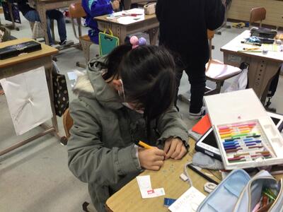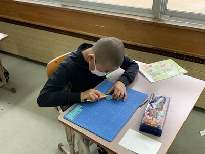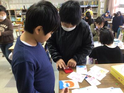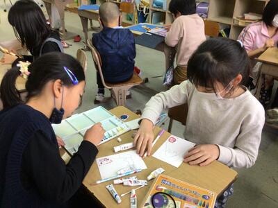 手描きのイラスト、オリジナルのスタンプ消しゴム、切り絵など工夫をしながら作っています