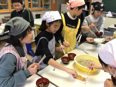 昨年度は実施できなかった、毎年恒例の5年生を対象としたそば打ち体験を行いました