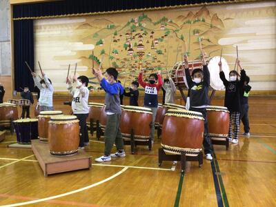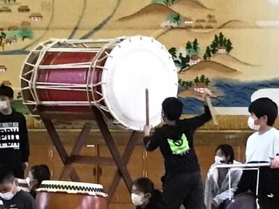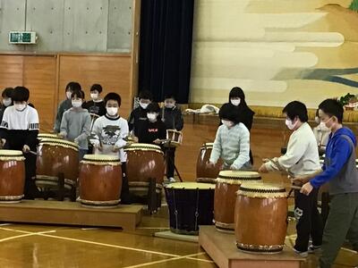 5年生が総合学習で取り組んできた、磐梯町に伝わる「明神太鼓」