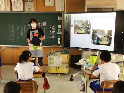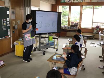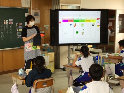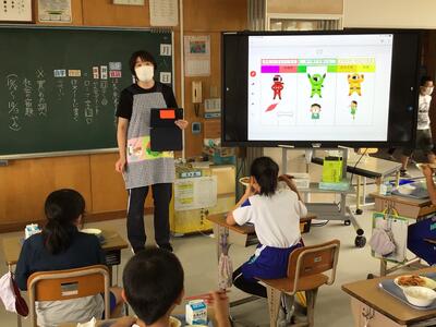 本校の栄養教諭が、給食の時間を使って、「食」について考える機会を作っています