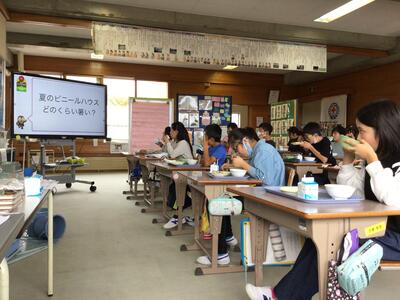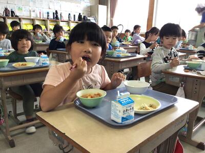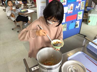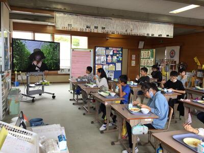 短い時間ですが、おいしい給食をいただきながら、「食」について考える有意義な時間となっています