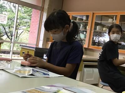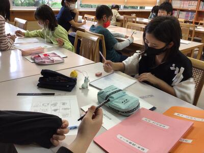 家庭科クラブでは裁縫を行っていますみんな真剣に作業をしています