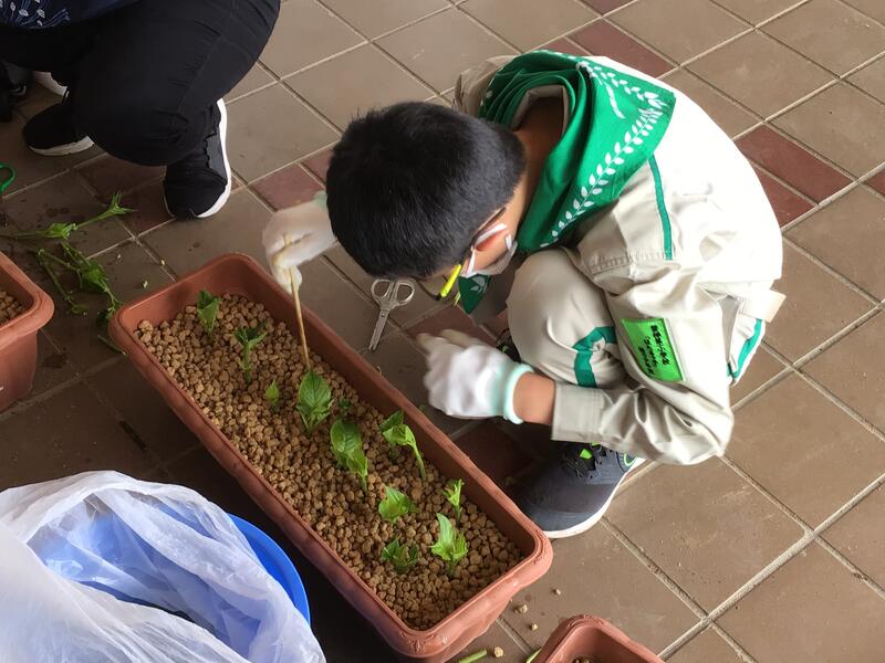 しっかりと根をはり、立派に葉をたくわえていますお手伝いいただいた地域の方も「こんなに順調に育つのはめずらしい❕」とおどろいていました(^^)/きっと子どもたちの思いがアジサイに伝わっているのでしょう