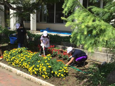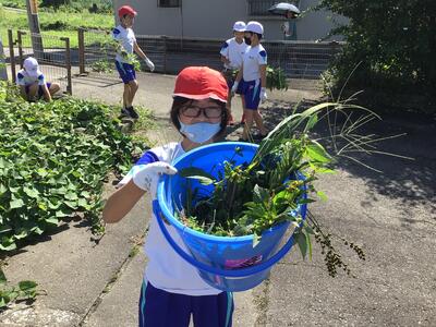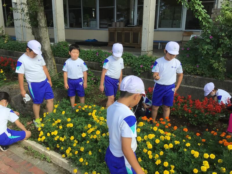夏休みに水やり当番の子どもたちが一生懸命、水やりと草むしりをしてくれたおかげで一小の花壇やプランター花々はきれいに咲き誇っていますきれいな花を見ていると心が和みますねきっと、ほたるっ子の優しい気もちが花にも伝わっているのでしょう花も育つ季節ですが、雑草もぐんぐん伸びる時期です夏休みが終わりましたが蒸し暑い気候の中で、子どもたちが一生懸命草むしりを行っていました声をかけると、「いつもお家で手伝っていますから、大丈夫です!」「こんなにたくさん取れました!」などと返ってきて、とてもうれしい気もちになりました