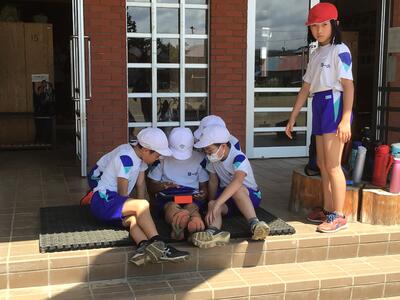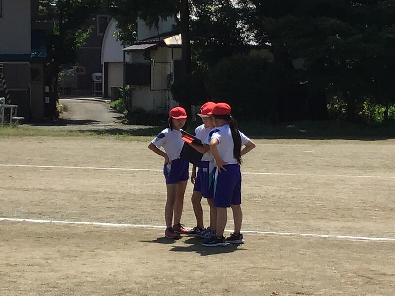 厳しい暑さの中、4年生が校庭で、元気に体育の授業を行っていました「走り幅跳び」の練習をしていました。すると、タブレットをみんなでのぞいていますどうして体育の授業でタブレットを使っているのでしょうか?
