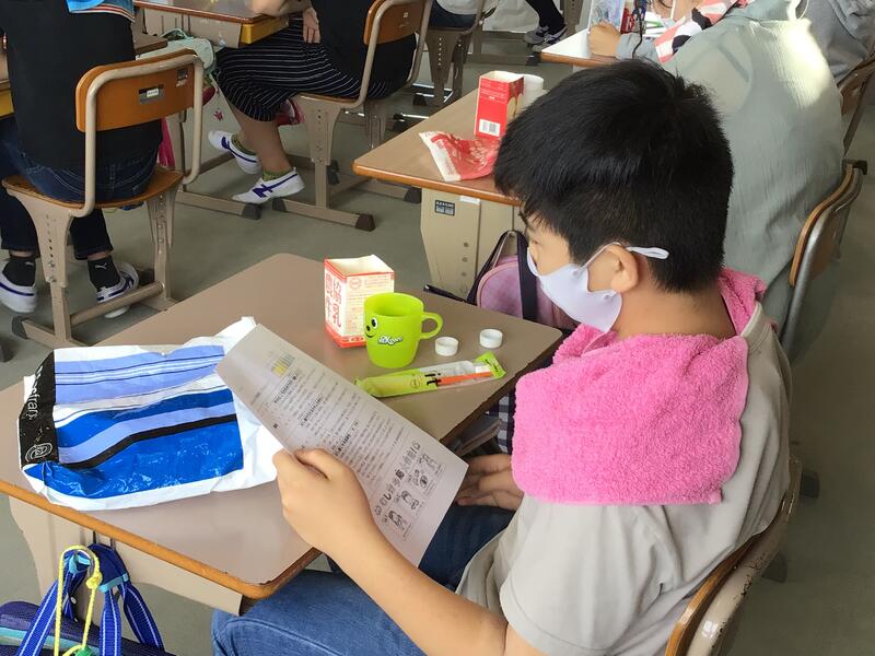 今日は町の保健福祉センターの方と歯科衛生士による「良い歯の教室」が行われました