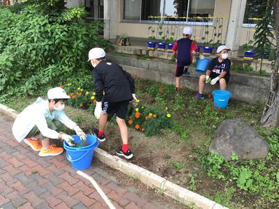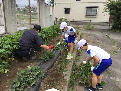 一小の畑がとてもきれいになり、明日の授業参観ではきれいな花壇をご覧いただけると思います
