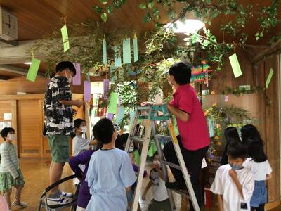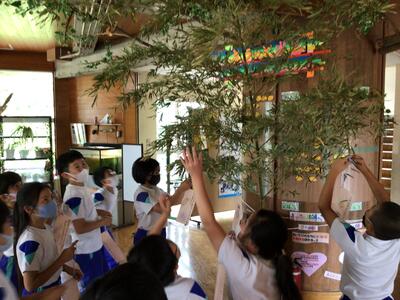 ささの葉さらさら、のきばにゆれる~ごしきの短冊~の歌詞どおり、あっという間にきれいに飾りつけられました