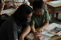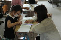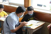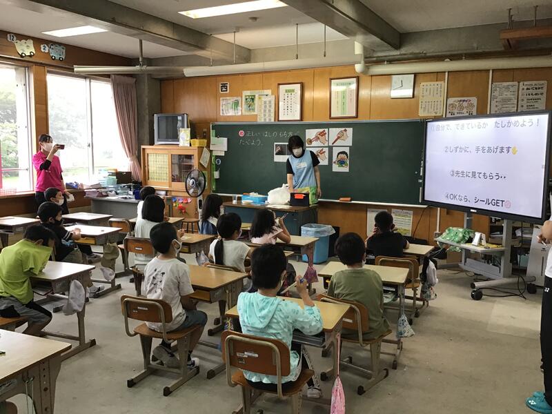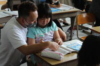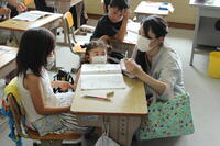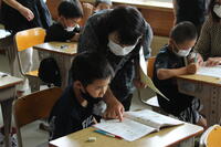 低学年は保護者と一緒に算数の問題を考えましたとても嬉しそうですね