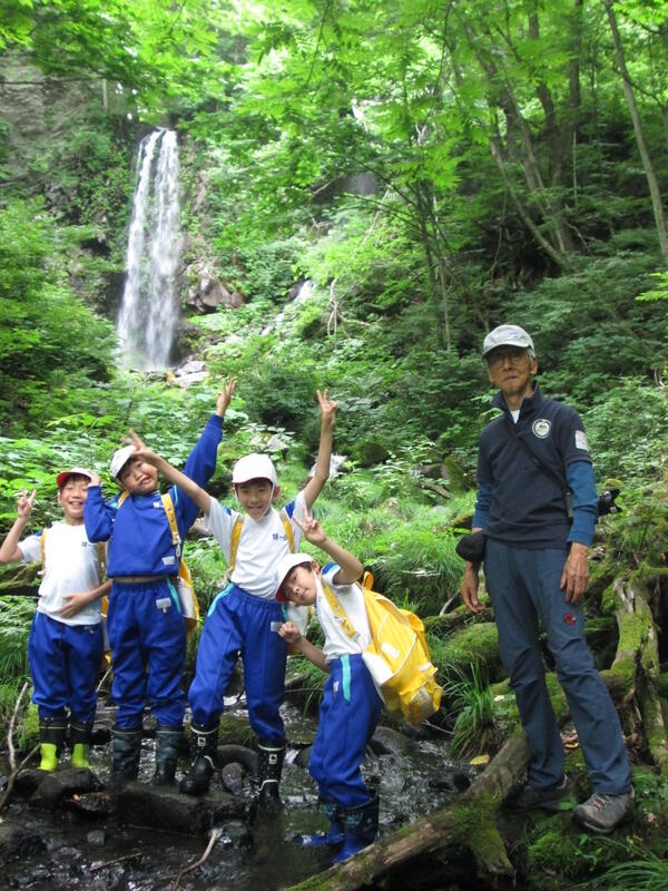 4年生が不動滝(通称:蛇追ヶ滝)に行ってきました天気予報は雨でしたが、またしてもお出かけの時間は雨が降らず、元気に行ってくることができました