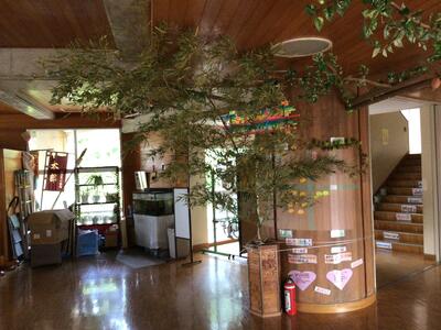 校舎の1階と2階に、恒例のたなばた用の立派な笹が飾られました