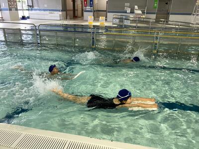 そして、ふれあいセンタープールでは、先生の言うことをよく聞いて、楽しく、安全に学習しています