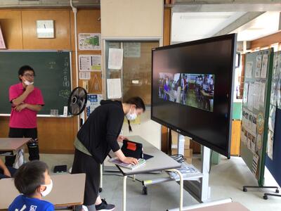 なかなか接続できず、心配されましたが、電子黒板に写ったお互いの顔を見て、とても嬉しそうでした
