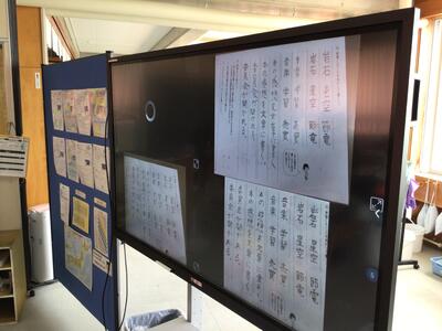 今日は4年生の書写で、書いた作品をタブレットで撮影して、電子黒板に写してみました