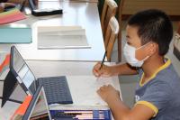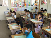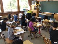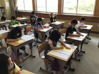 1、2年生が「たなばた展」に向けて、書写の授業で一生懸命がんばっています