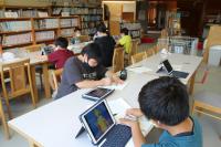 タブレットで、好きなキャラクターを探し、イラストを描いていました