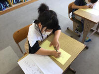 先生のお話をよく聞き、見本を見ながらとても集中して書いていました