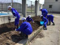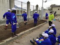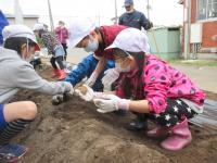 学年ごとに畑の準備をし、まずは、じゃがいも畑の準備をし、学年ごとに種いもを植えました