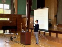本日、全校集会にて、5/10(月)~6/4(金)までの4週間お世話になる、教育実習生の先生を紹介しました。実習生の先生は本校の卒業生で、教師になるのが夢で、今回母校にて実習を行います。全校生徒はとても元気にあいさつできていました。運動が大好きで、とても明るく元気な先生ですぜひ、子どもたちと4週間、良い思い出をたくさん作ってほしいですね