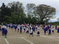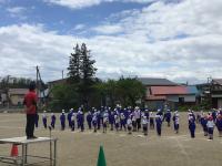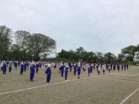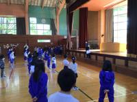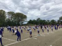 本日、3校時目に2回目の全体練習を行いました今回はたて・よこをしっかりと整列すること、体操隊形に広がってのラジオ体操、そして開会式が終わってからの退場について練習を行いました