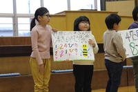 表現活動は、2年生による算数のかけ算を生かしたクイズと音楽で習った鍵盤ハーモニカの演奏発表。大きな声ではっきりとクイズを伝えたり、みんなで心をそろえて「子ぎつね」の演奏をしたりする姿に、全校生からは大きな拍手が送られました。
