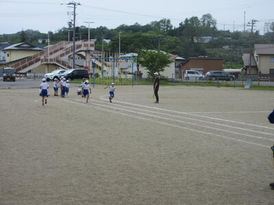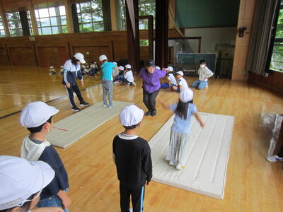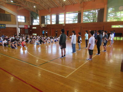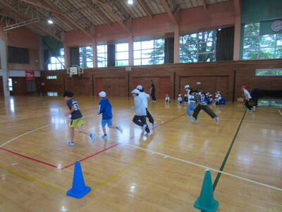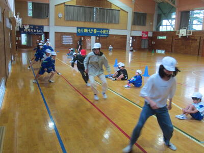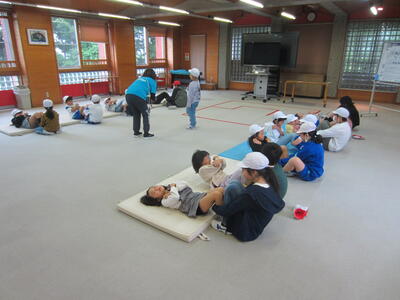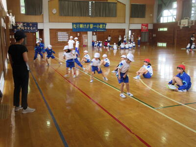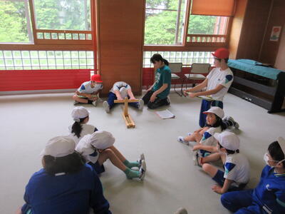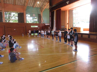 ほたるファミリー(縦割り班)ごとに、毎日1種目ずつ練習しています。