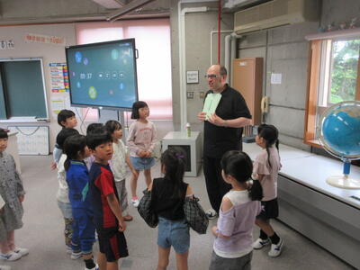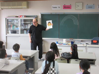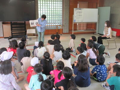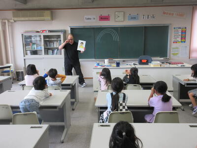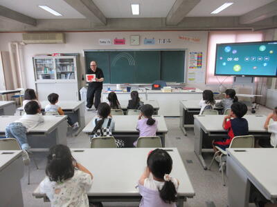 天気は雨でしたが、明るいダン先生の働きかけに、子ども達の反応は良く、楽しく英語に触れあうことができました。