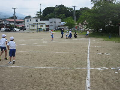ほたるファミリー(縦割り班)ごとに、各種目に挑戦しました。