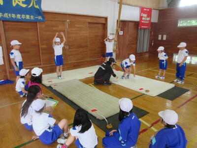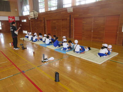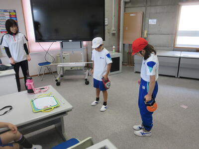 ※ 今朝は雨のため「ソフトボール投げ」は教室で動画を見て投げるフォームを練習しました。