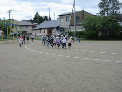 1~3年生が内側の線、4~6年生が外側の線を走りました。