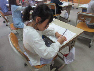 1年生は国語「かきとかぎ」の学習で「ぶ」や「ぷ」の書き方を練習していました。