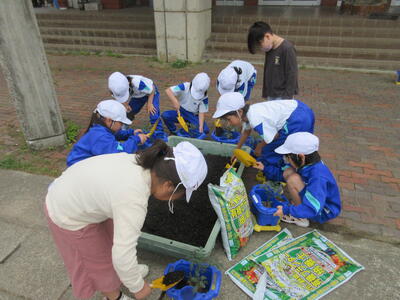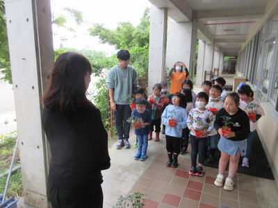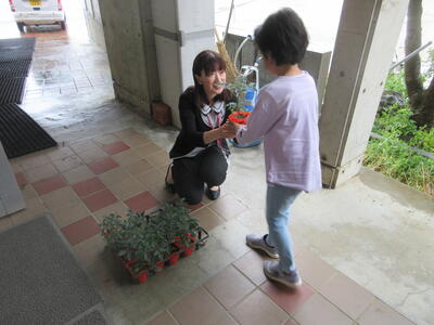 ミニトマト贈呈式&ミニトマトの苗植え(2年)