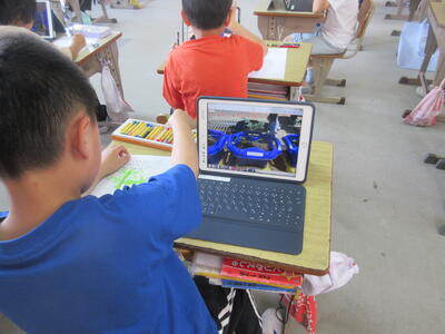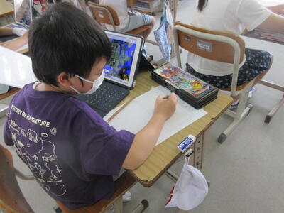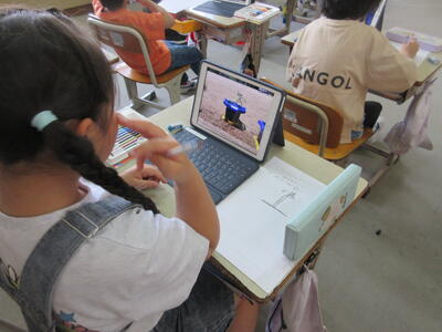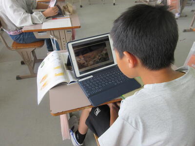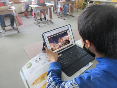 各自タブレットで、メダカの卵が生まれるまでの様子を、動画を観て調べていました。
