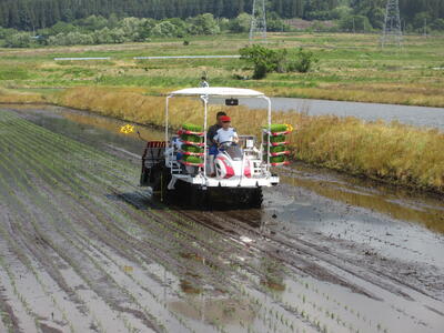 田植え機は8条植えだったので、あっという間に苗を植えていくスピードに驚きました。
