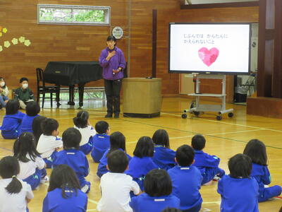 からかうつもりでなくても相手を傷つけてしまうことがあること、もし言ってしまったら「ごめんね」と謝ること、言われて嫌なことは相手に「いや」と伝えることが大事であることも説明しました。
