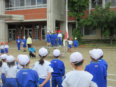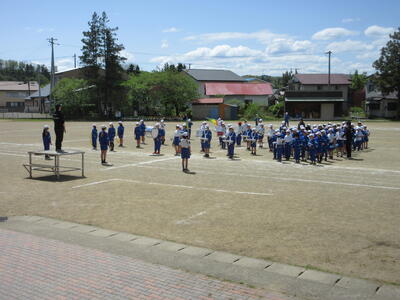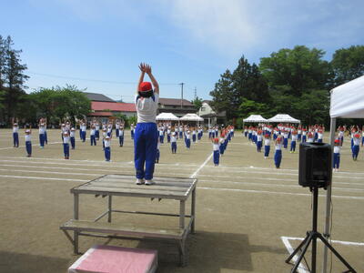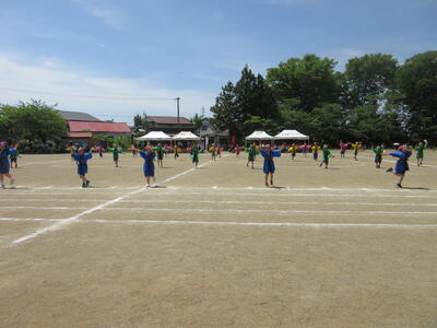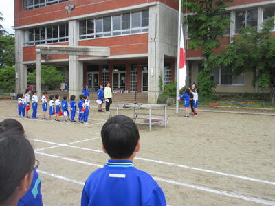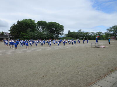 今日は全校生で、開会式と閉会式、ラジオ体操の練習をしました。