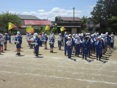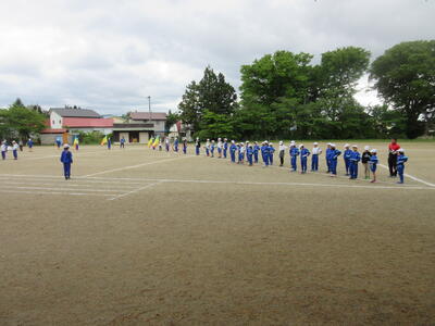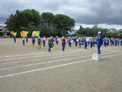 今日は、運動会本番と同じように、集合整列・演奏・退場まで通して行いました。