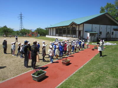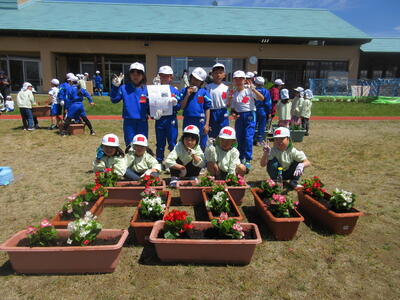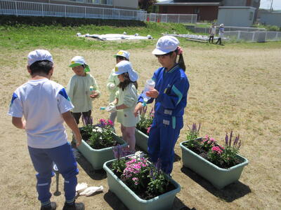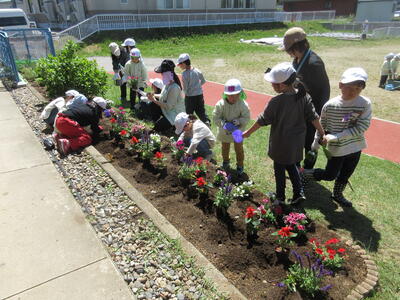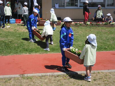 2024年5月14日 13時13分3年生が幼稚園で花植えを行いました。