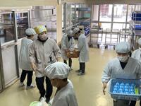 自分たちの順番が来たら、調理員さんにあいさつをして自分の担当のものを運びます。
